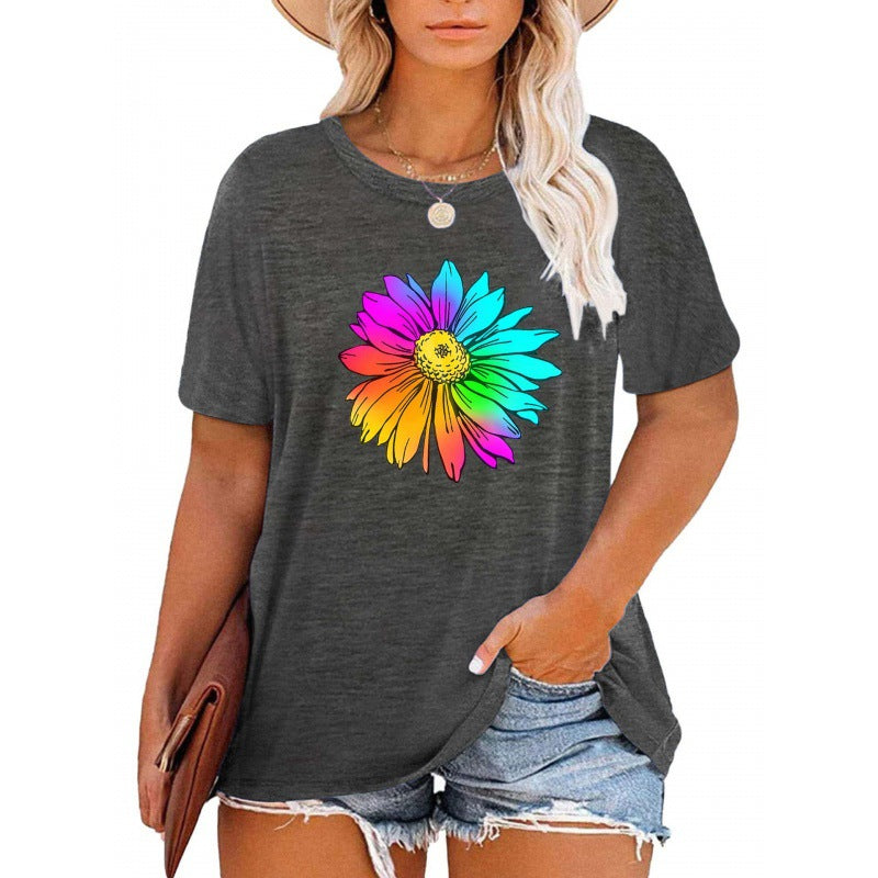✨Women V Neck Daisy Print Tees Casual T-shirts